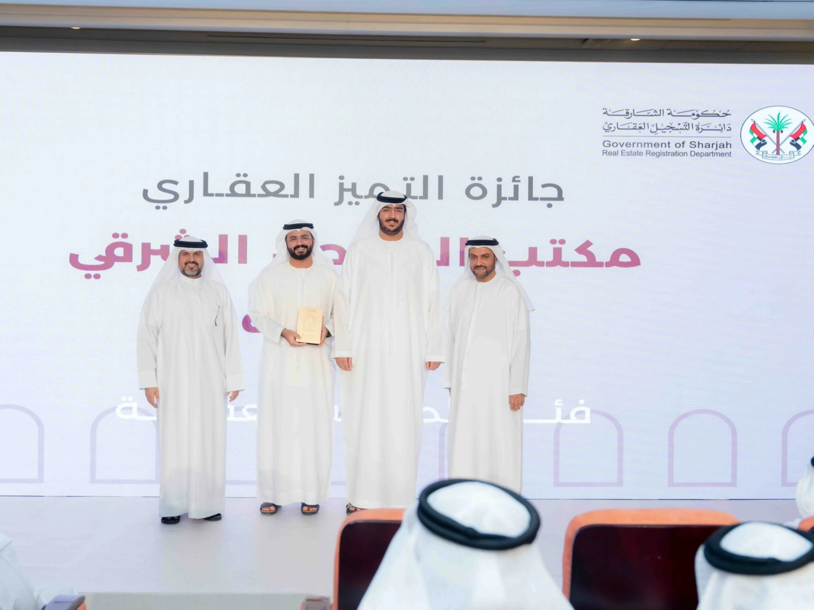 In the Real Estate Offices category, the winners were: Al Deqqa Real Estate Office, Sama Al Sharjah Real Estate Office, Al Sahel Al Shamali Real Estate Office, Qasr Al Shuhd Real Estate Office, Al Sahel Al Sharqi Real Estate Office, Mohammed Al Youha Real Estate Office, and Al Shahiq Real Estate Office.