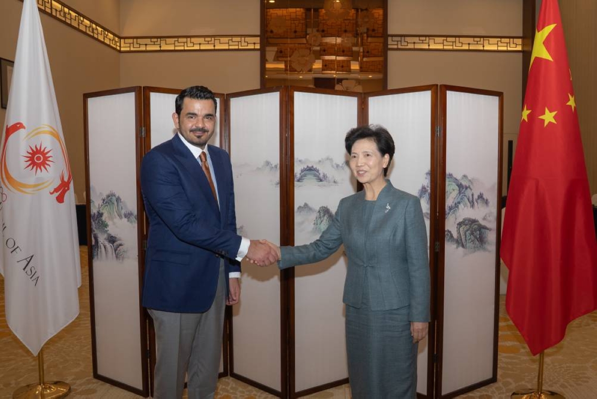 President of the Olympic Council of Asia HE Sheikh Joaan bin Hamad al-Thani met with State Councilor of China Shen Yiqin, in the presence of Chinese Olympic Committee President and Minister of Sport Gao Qidan to enhance cooperation between the two sides.